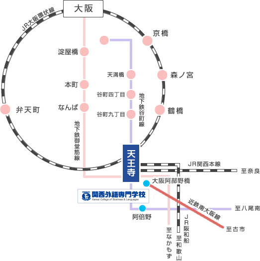 JR・大阪市営地下鉄・近鉄など主要な鉄道が集中している天王寺駅から徒歩5分の便利な立地条件にあります。