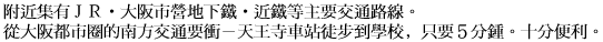 JR「天王寺站」:自東出口進入地下道﹐出「松崎口」往南約150公尺