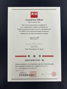 公益財団法人日本英語検定協会様より奨励賞をいただきました✨