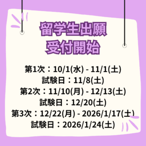 第1次から第3次の日程が決まっています。確認をしてください!日本人も留学生も出願方法・提出物に関してなど気になることや聞きたいことがある方は